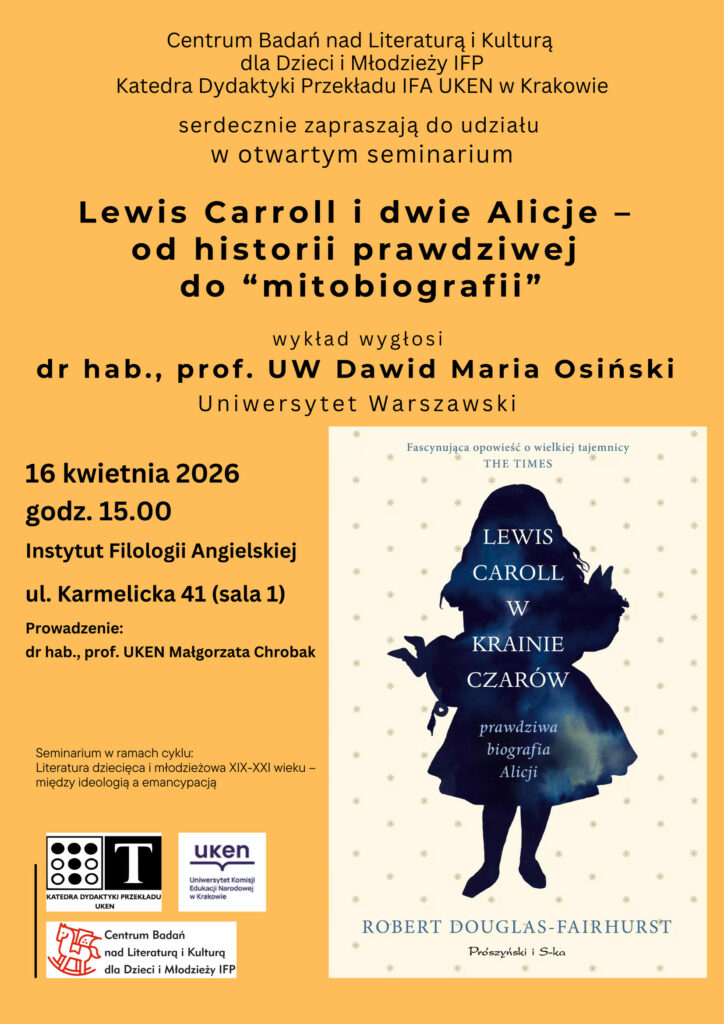 Centrum Badań nad Literaturą i Kulturą dla Dzieci i Młodzieży, Instytut Filologii Angielskiej UKEN w Krakowie serdecznie zapraszają do udziału w otwartym seminarium: