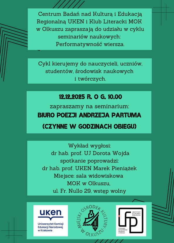 12 grudnia uczestnicy seminariów naukowych Performatywność wiersza wysłuchali wykładu dr hab. prof. UJ Doroty Wojdy...