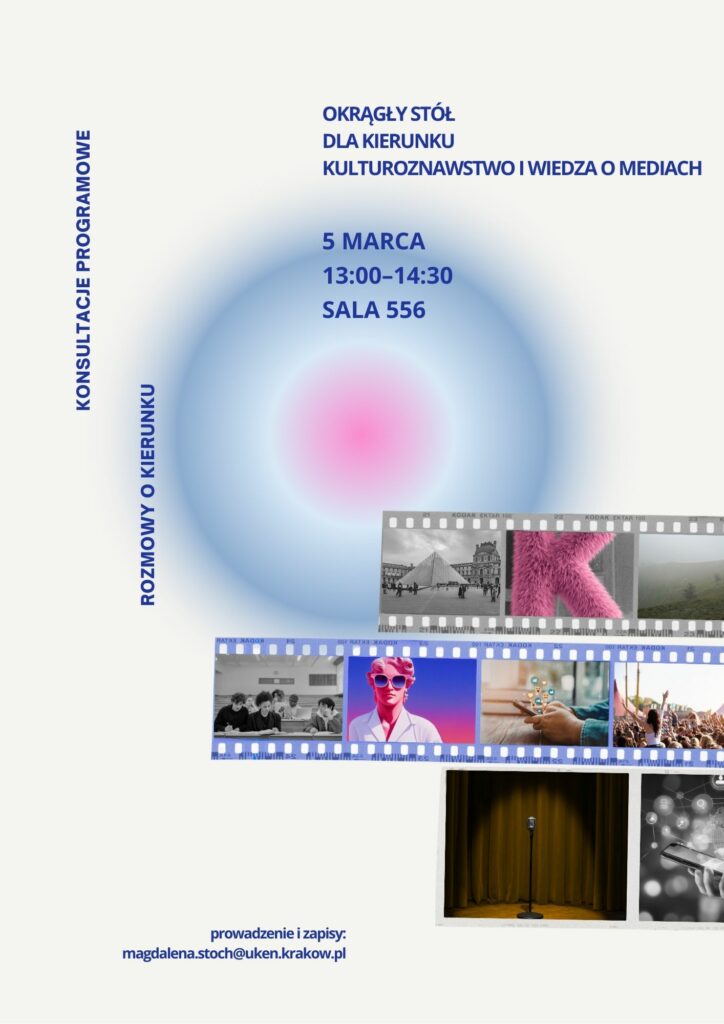 Okrągły stół kierunku Kulturoznawstwo i wiedza o mediach Konsultacje ścieżek kształcenia: literaturoznawczej oraz medioznawczej Okrągły stół to formuła rozmowy, której celem jest wspólne...